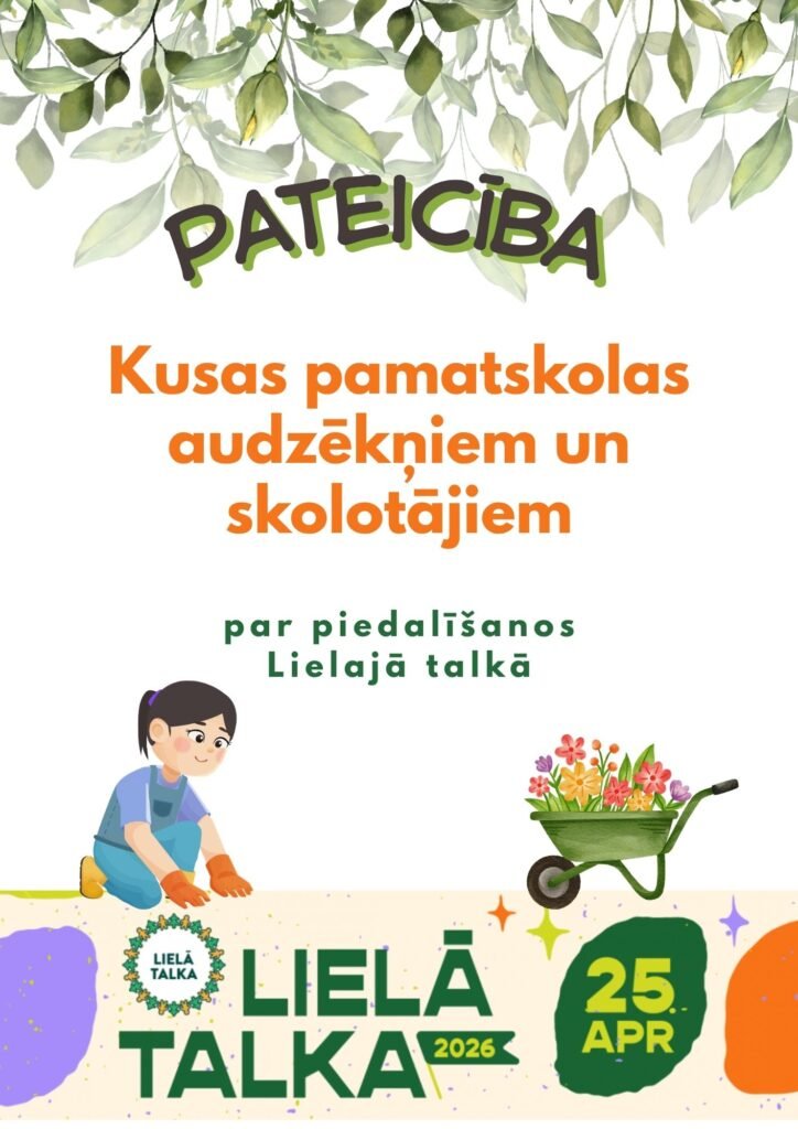 Entuziasma un enerģijas pilni pēc pusdienām klašu grupiņās kopā ar audzinātāju pulcējamies skolas priekšā, saņemam baltos maisus un dodamies uz savu objektu. Rezultātā Kusas centra dīķi ap estrādi ir apsekoti, atkritumi savākti; komanda ”Pieci smejas, Kristiāns izdzīvo” lieliski tiek galā ar uzticēto uzdevumu. Estrāde arī gaidīs savus apmeklētājus, jo apkārtne ir sakopta, kritušie zari savākti. Mazajās ieliņās, kuras izlīkumo no Kusas centra uz ūdenstorni Lauteres virzienā, Zelgauskas un Madonas virzienā aktīvi darbojas čaklie palīgi un, kad pagriež galvu atpakaļ, ir laba sajūta par tīro vidi apkārt. Skolas iekšpagalms būs vēl krāsaināks nākošajā pavasarī, kad izplauks sastādītie krokusi, sniegpulkstenītes, zilsniedzītes, narcises, pat kāda tulpe iemaldījusies starp stādiņiem, kuru pamana ”TRIO IZAICINĀJUMS”. Puķu dobē būs vieglāk darboties, kad pienāks ravēšanas laiks, jo uzvestas divas tačkas melnzemes. Prieka ovāciju brīdis Lielajā talkā ir skolas saimniecīšu saceptie rauga pankūku kalni ar ievārījumu un piparmētru tēju! Garšo tik labi, ka papildporcijas zūd viena pēc otras! Esam nopelnījuši!